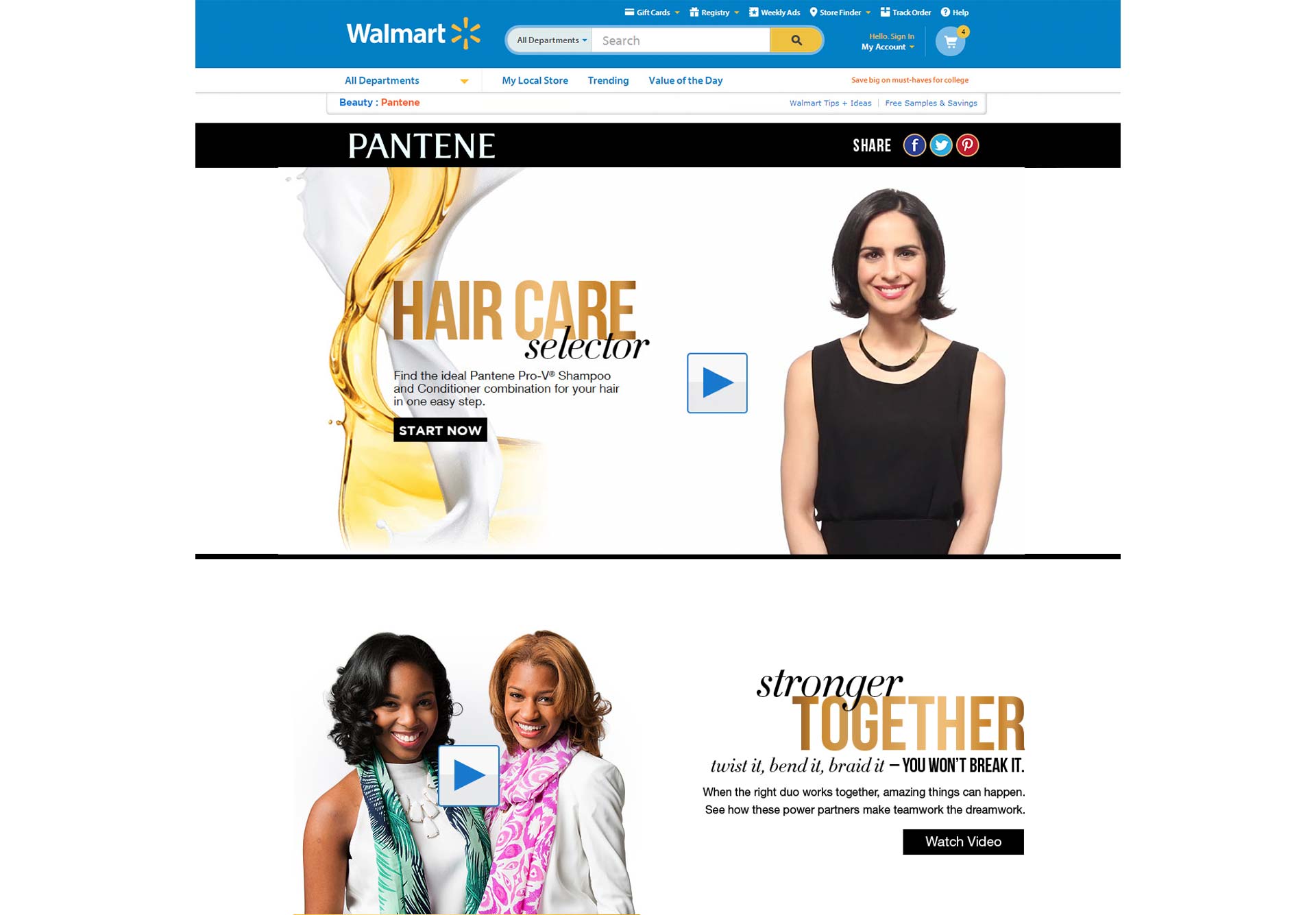 Digital brand experience featuring an interactive product selector tool using custom video as the transition flow. These clips were shot on-location in New York for Pantene and Walmart.